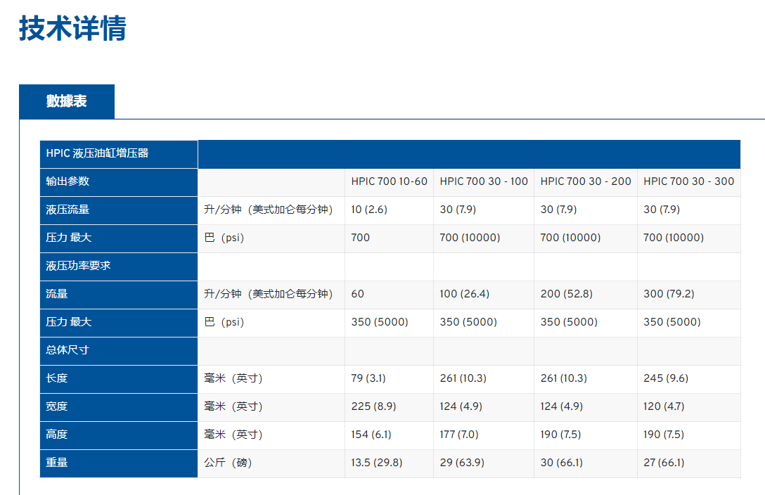 HPIC 液压油缸增压器